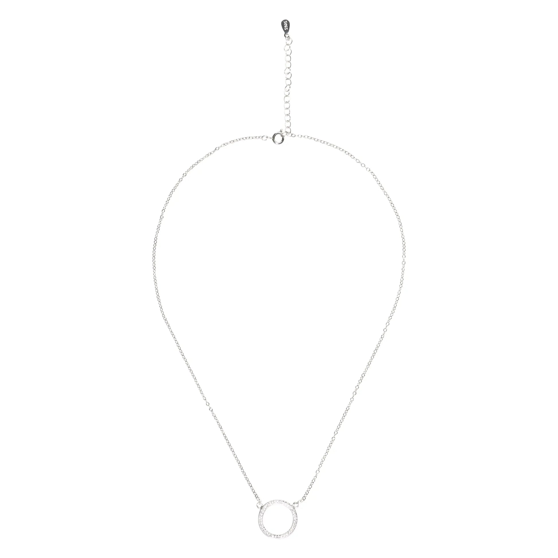 Discover timeless elegance with our Round Pendant Pave Necklace. Crafted from rhodium-plated brass, this necklace features a stunning clear cubic zirconia stone set in a 1.50 x 1.50 cm round pendant. The 16-inch link chain is complemented by a secure spring ring clasp, ensuring a comfortable fit. Ideal for adding a touch of sophistication to any outfit, this necklace is perfect for both everyday wear and special occasions.
